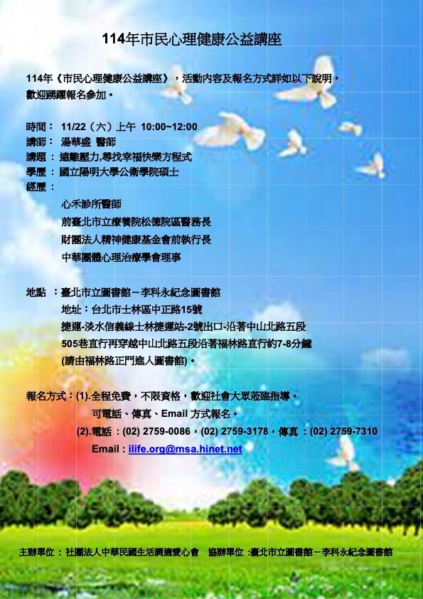 地點:台北市立圖書館李科永紀念圖書館B2樓會議室(台北市士林區中正路15號)
