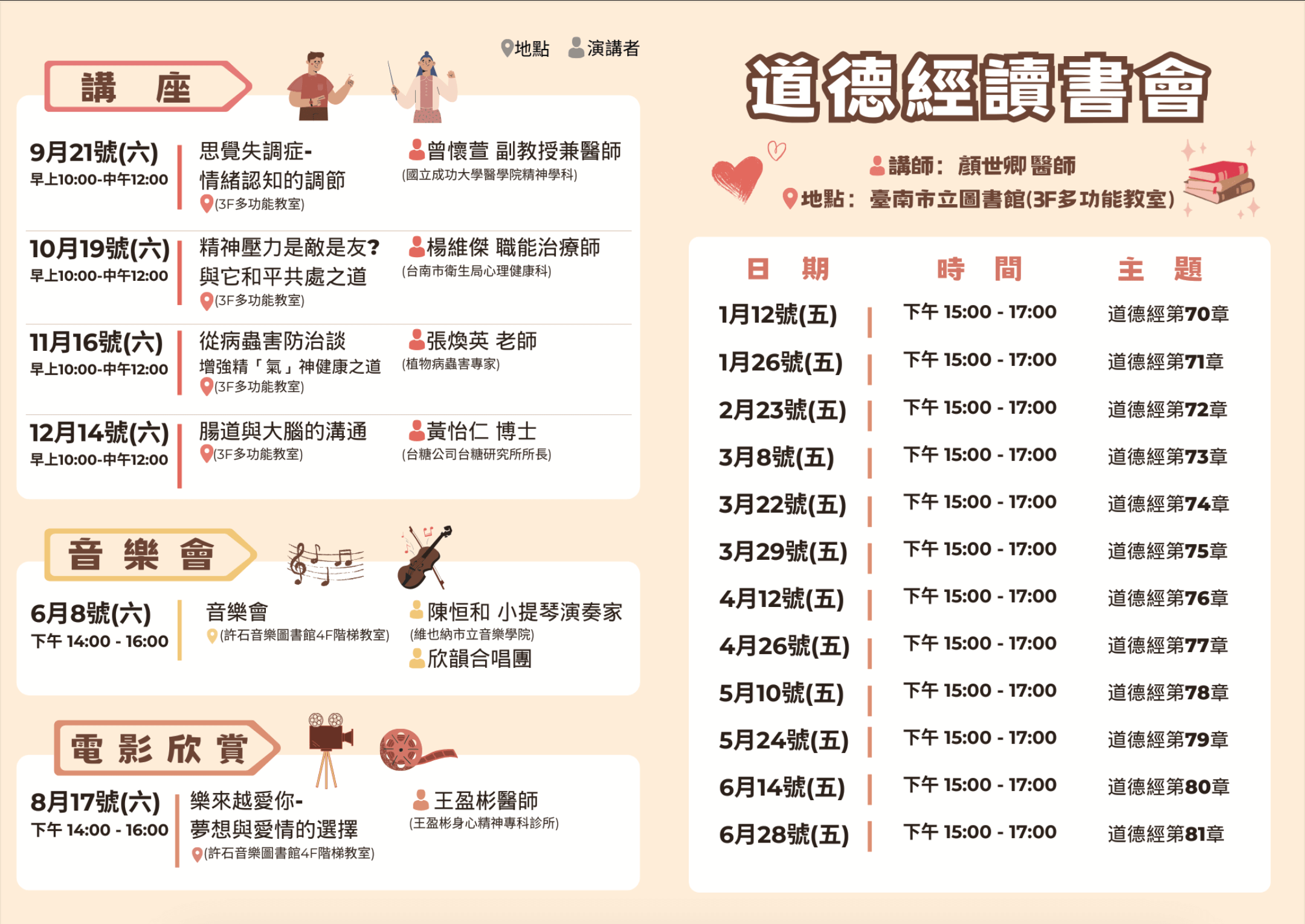 主辦單位:臺南市立圖書館、臺南精神健康學苑